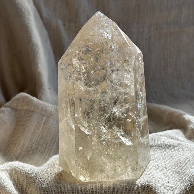 圧倒的な存在感を放つ、1.9kgのブラジル産 天然・非加熱シトリン BIG ポイント。 大地が長い年月をかけて育んだその黄金色は、 加熱処理されたものでは生まれない、穏やかで深みのある “本物の光” を宿しています。 カット面はどの角度から見ても美しく、 磨かれたクリスタルの表面に光が差し込むたび、 内部のクラックから虹がふわりと浮かび上がる特別な個体。 透明度の高さとボリューム感が相まって、 まるで太陽がひとつの結晶の中に息づいているかのような輝きを見せてくれます。 1.9kgというサイズは、空間全体のエネルギーをしっかりと支え、 明るさ・豊かさ・前向きさをもたらす“パワフルな光の柱”。 リビング・サロン・ヒーリングスペースの中心に置くことで、 場の波動を穏やかに整え、温かい循環をつくり出します。 ⸻ 【KEYWORDS】 豊かさ / 自信 / 太陽のエネルギー / 前進 / 創造性 ⸻ 【こんな方へおすすめ】 • 新しいスタートを切りたい • 自信を取り戻したい • 仕事運・金運を整えたい • 心の重さを軽くしたい • クリエイティブな活動をサポートしてほしい ⸻ おすすめの使い方 • 玄関・デスク・お財布の近くへ • 瞑想・アファメーションのお供に • クリスタルグリッドの中心 • 光が入る窓辺に置いて、自然の美しさを楽しむ ⸻ 天然シトリンについて こちらのシトリンはブラジル産の ナチュラル(非加熱)。 優しいハチミツカラーと透明度は、人工的な処理では出せない “深く穏やかな黄金の波動” が特徴です。 追加の写真や動画など、気になったこと、お気軽にお問い合わせください(^^) 【SIZE】 1973 g W 10.5 cm x D 8.3 cm x H 16.5 cm 【ORIGINE】 Brazil 【CARE】 退色の原因となりますので長時間直射日光に当たらせるのはお控えください。 月光浴・セージ・音叉等での浄化が可能です。 強い衝撃を受けるとヒビ、割れが生じる場合がございます。お取り扱いには十分お気をつけください。 水のように美しく透き通ったものが良いと思われがちですが、内部にヒビや他の鉱物などのインクルージョン(内包物)が入っているものがあり、それが天然物の証。また、インクルージョンによって様々な種類に分類され、それぞれ違った印象を与えてくれます。 ▼ 当店ではクリスタルがお手元に届くまで関わる全ての過程にも着目し 環境保全と鉱山作業員のフェアーな労働管理を行われている 地球に愛とリスペクトを持つサプライヤーが扱うクリスタルを皆様にお繋ぎできるよう努めています。 ▼出品商品の全ては天然の自然物ですので不純物や内包物、色むら、天然キズ、ひびがある場合がございます。商品ページにアップしている写真や商品説明でよく確認の上、ご購入お願いいたします。 また商品はできるだけ現物に近い色で撮影していますが、光源.カメラ.モニター画面により実物と色が若干異なる場合があります。 ▼物重さ、商品のサイズなどは測り方によって誤差が生じる場合があります。 ▼環境に配慮し最低限の簡易包装で大切に商品をお届けいたします。 #シトリン #インテリア天然石 #インテリア鉱物 #開運グッズ #ハイクオリティ #高品質 #投資