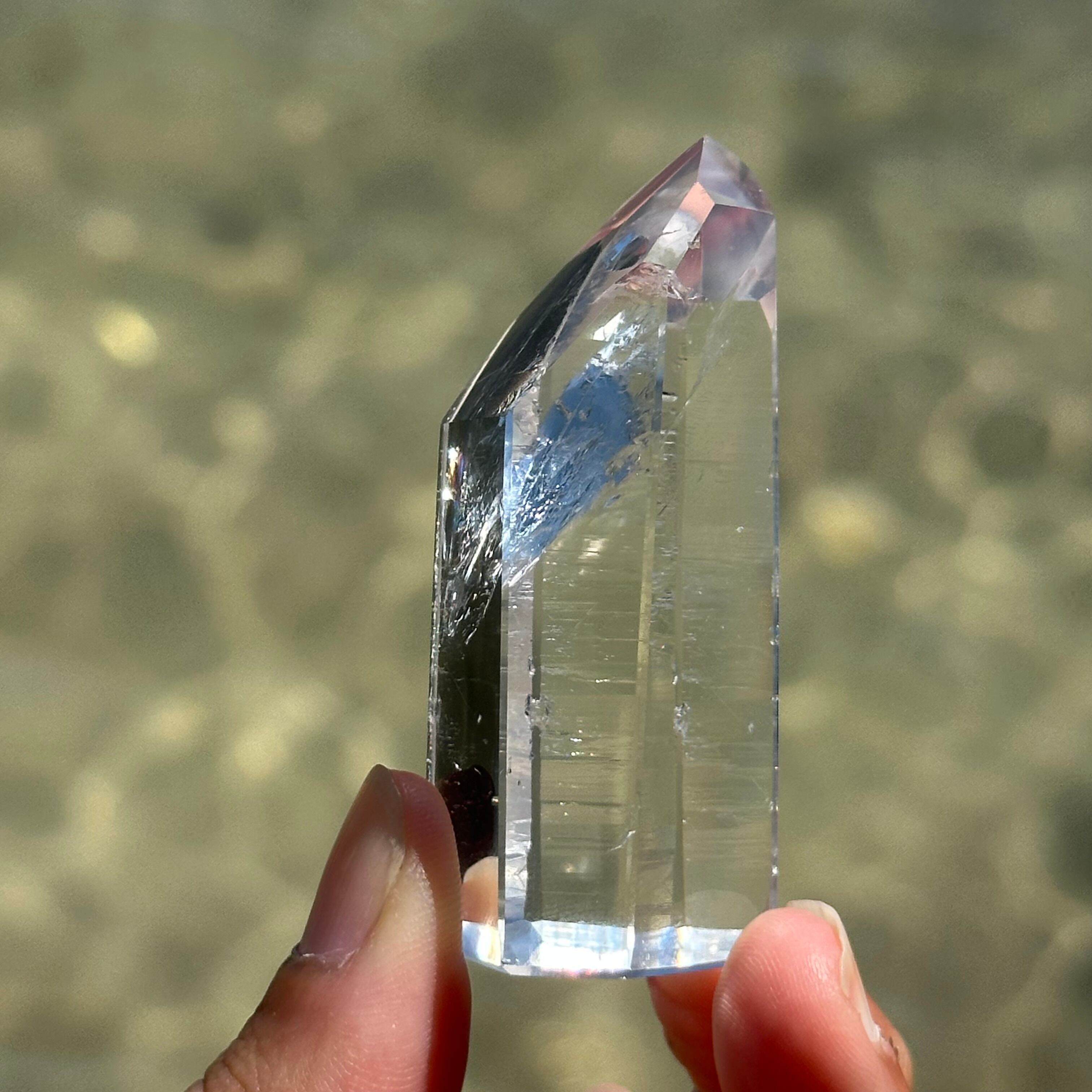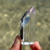 透明感と奥行きを兼ね備えた、手のひらサイズの天然水晶ポイントです。