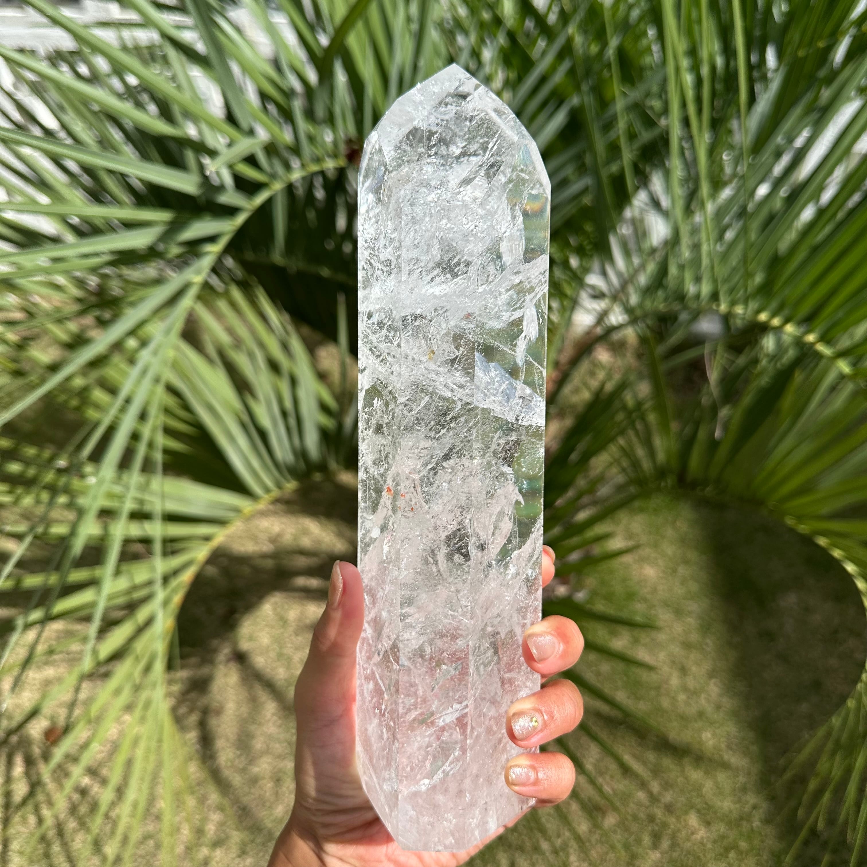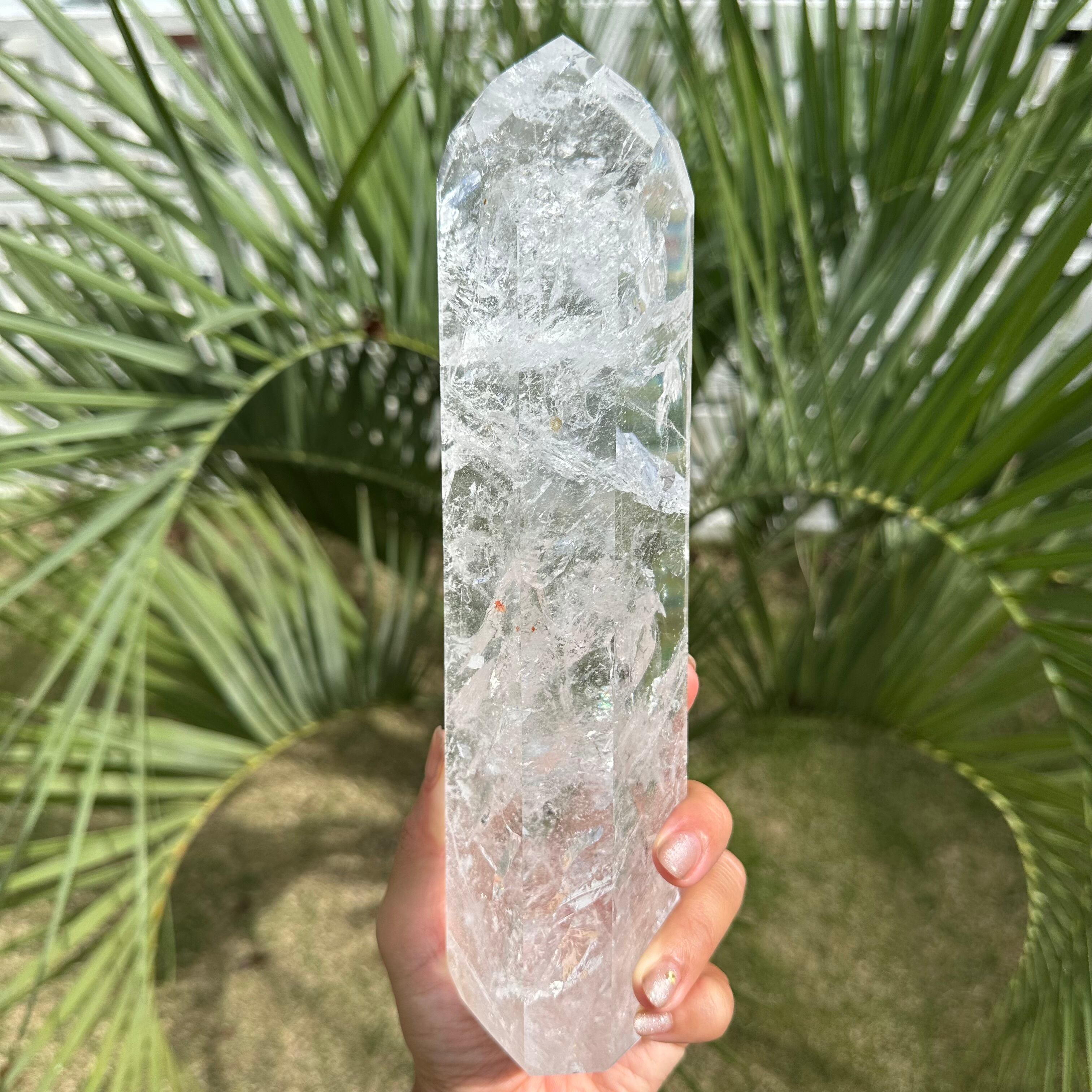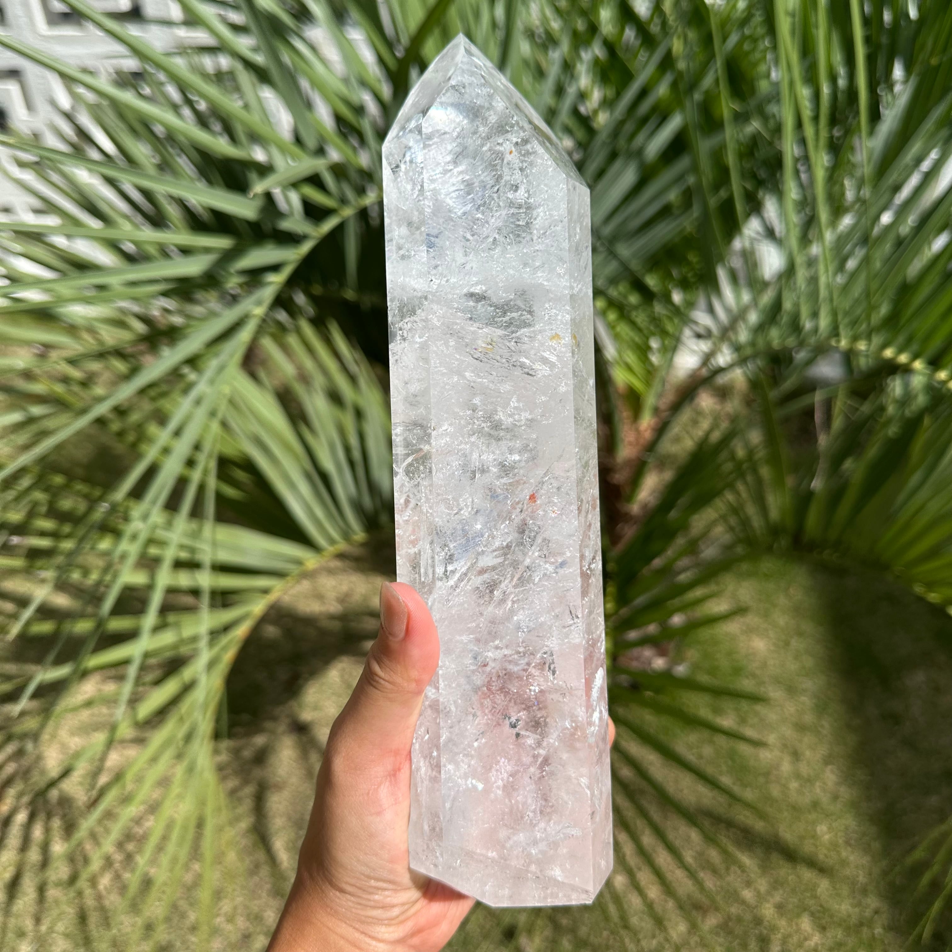 溢れる光のアート水晶 タワー ブラジル産 Rock Crystal Tower with Rainbow
