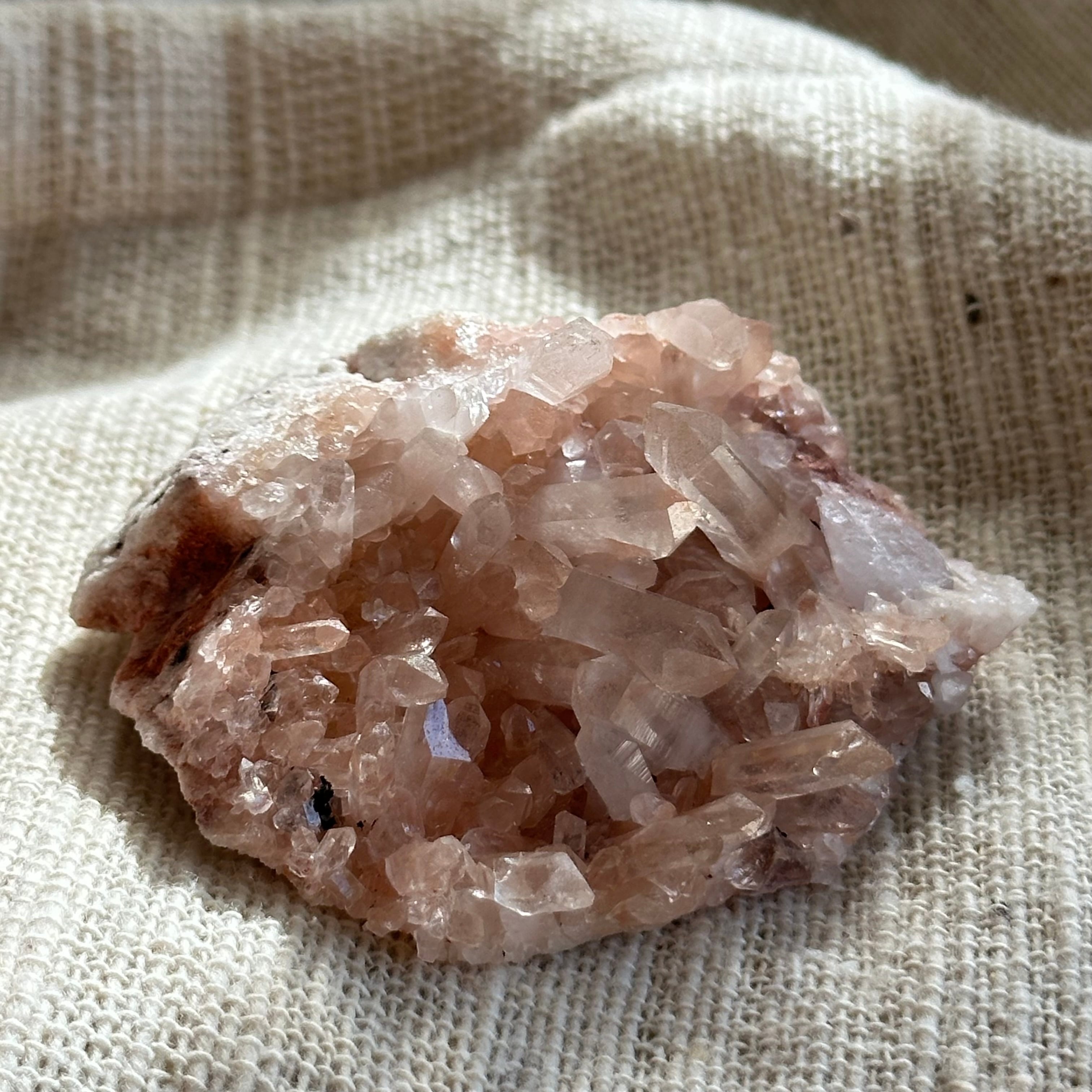 手のひらサイズ【インド・マニカラン産】 ピンクヒマラヤン ミニ クラスター 透明度の高い細かなポイントがぎっしり