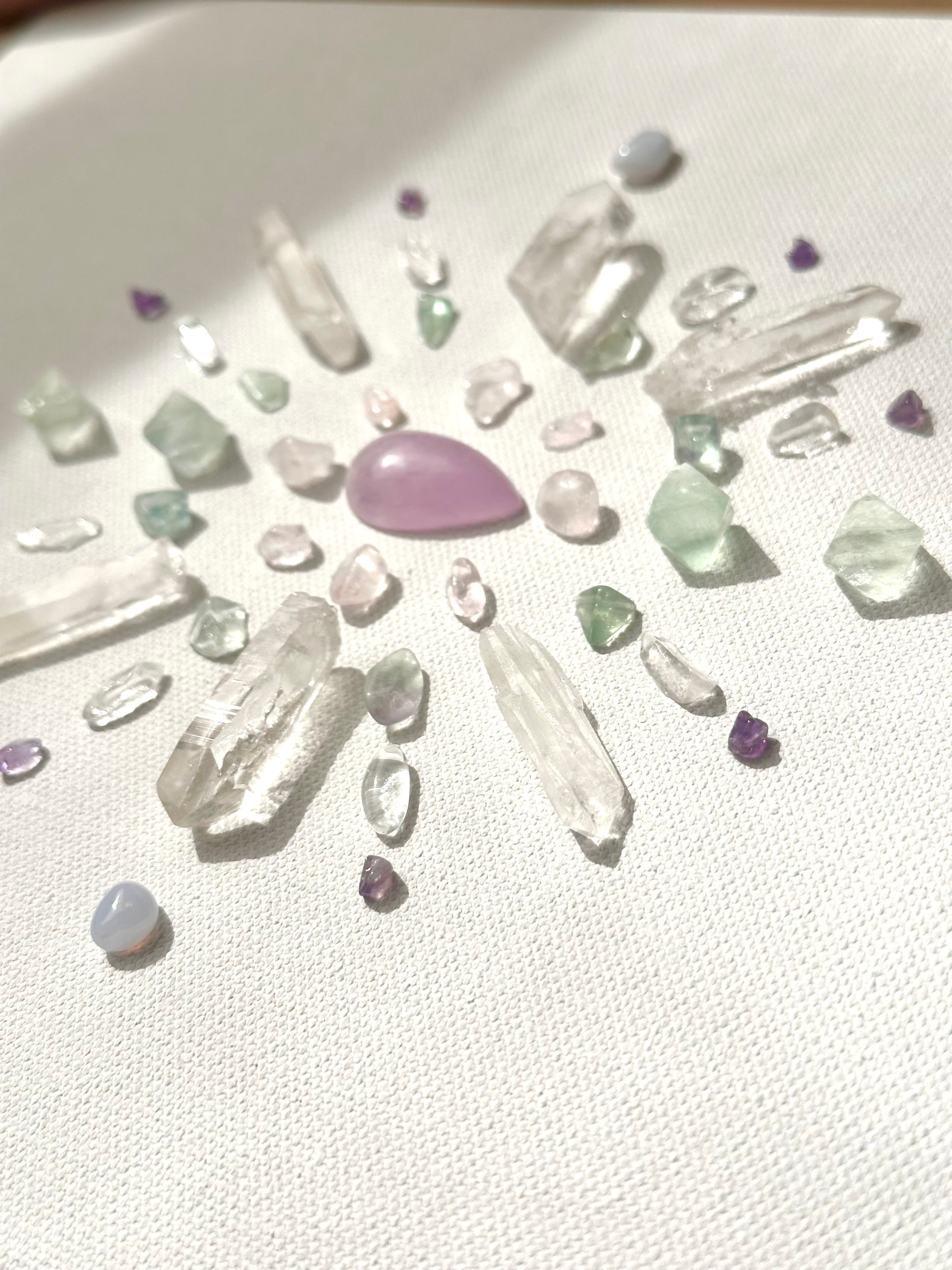 グリッドはヒーリングとバランスをもたらす、特別なパターンで作られていて、この心地よく調和された美しいクリスタルの配置が、あなたのパワースポットを作り上げます。