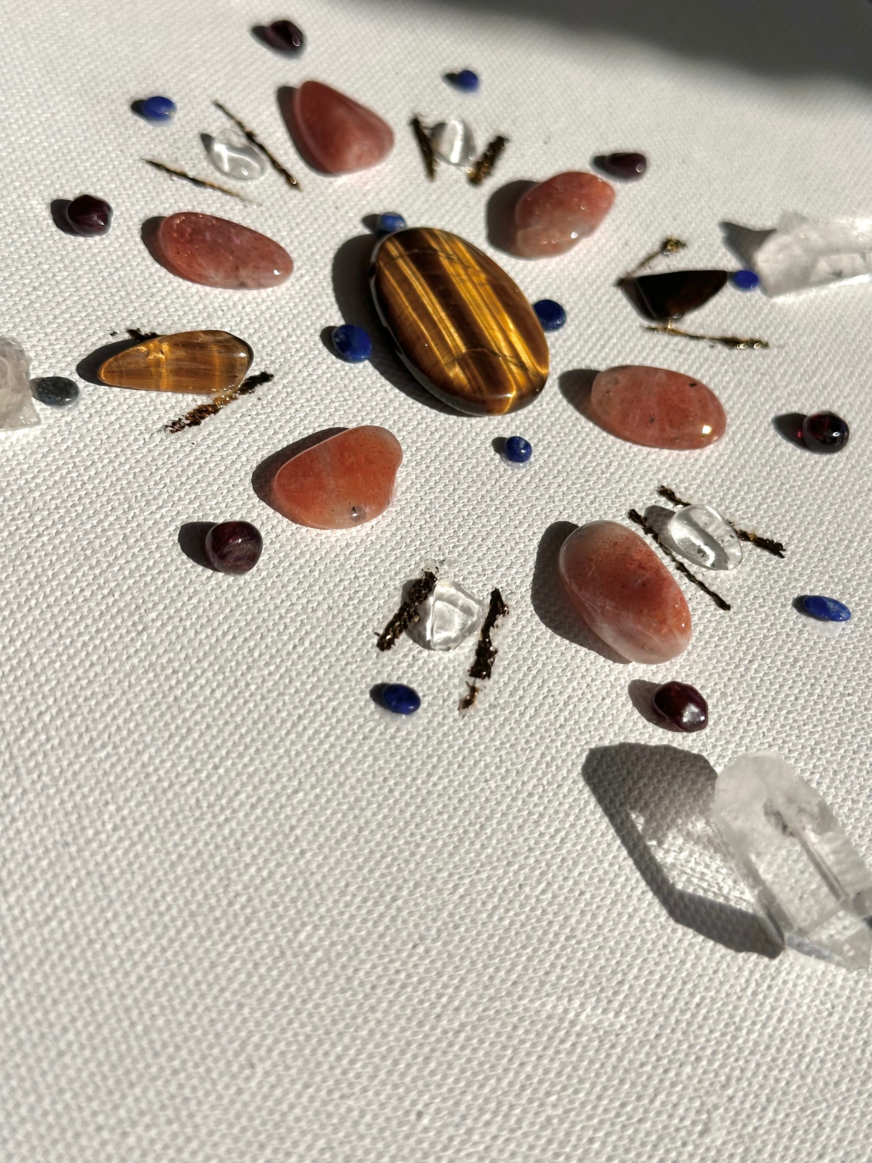 作成前にはクリスタルと場所、自身の浄化、瞑想、オラクルカードからのインスピレーションをもとにクリスタルヒーラーとして活動する店主が持つ知識と経験を踏まえて厳選されたクリスタルを使用。心を込めて丁寧に作り上げています。