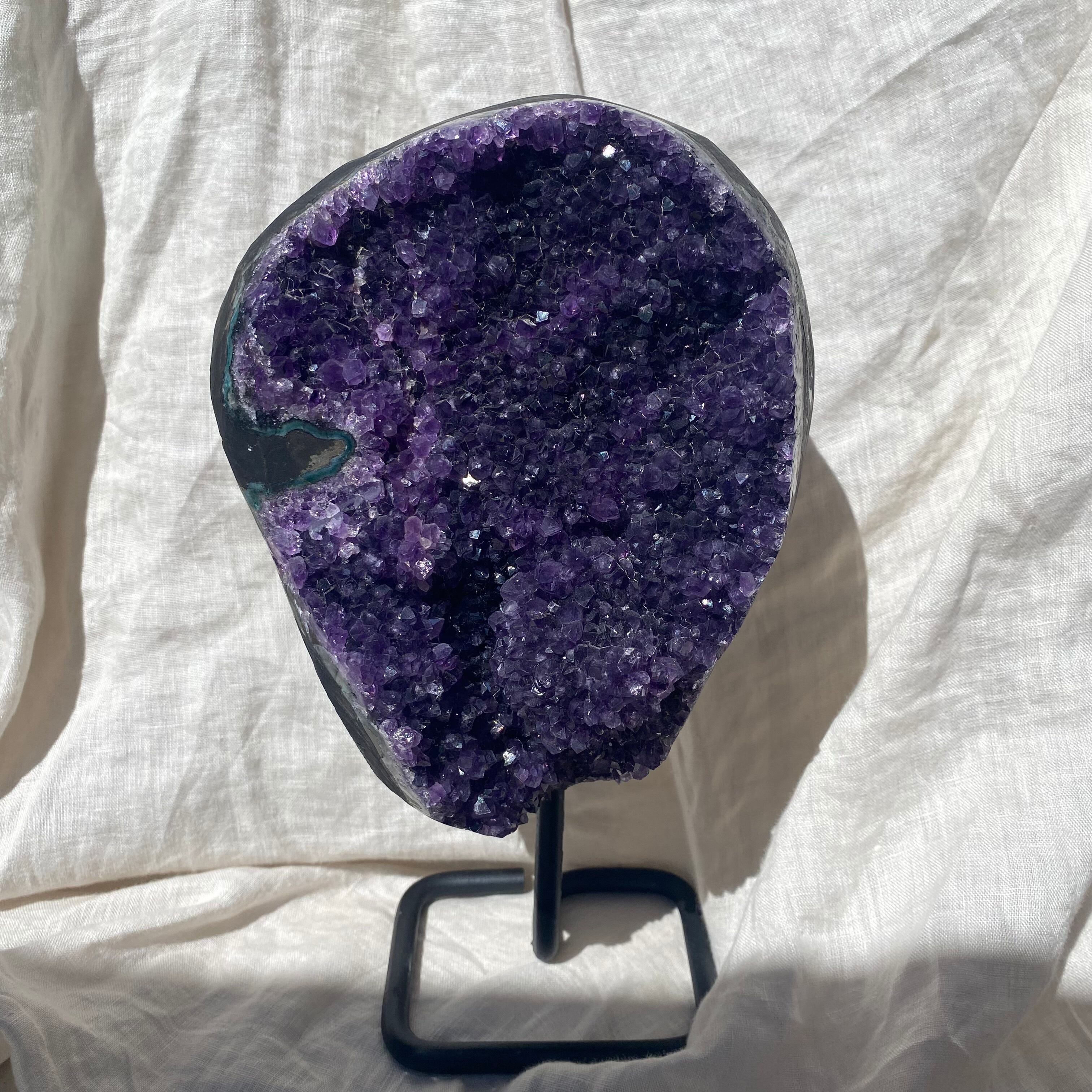 深みのある紫色の結晶がびっしりと詰まった、美しいアメジスト。