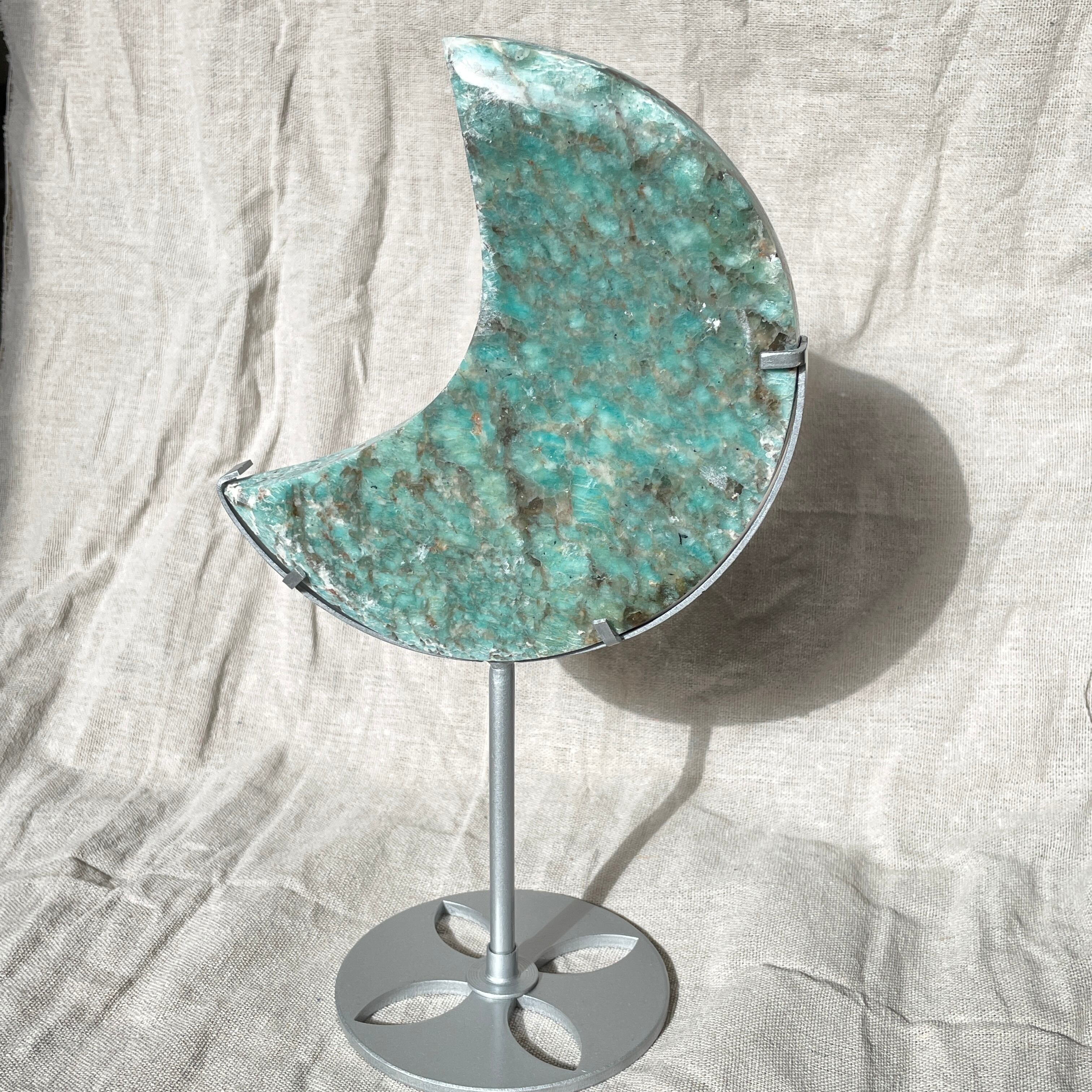 希望の石【 アマゾナイト】ムーン シェイプ ブラジル産 スタンド付き AMAZONITE MOON SHAPE with stand