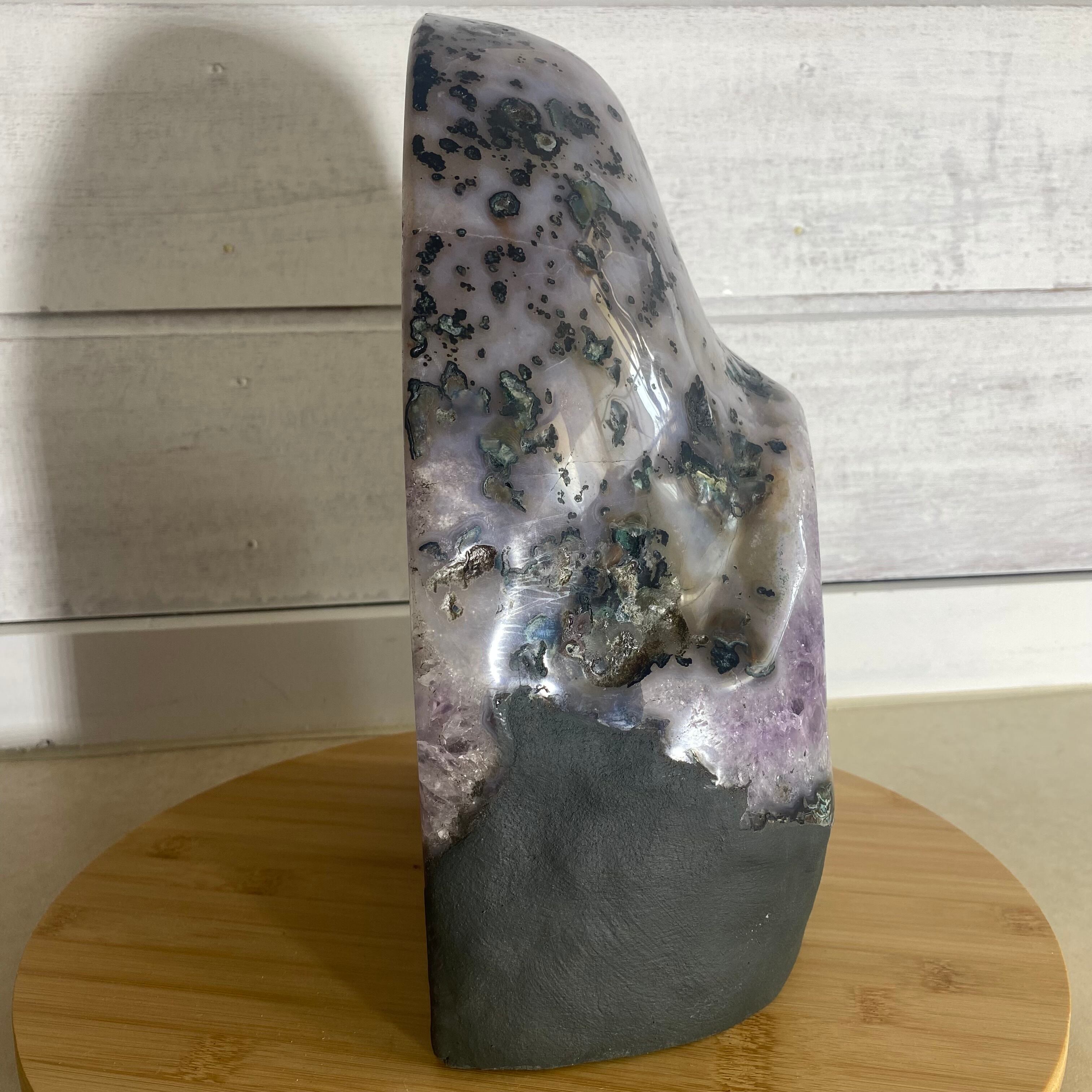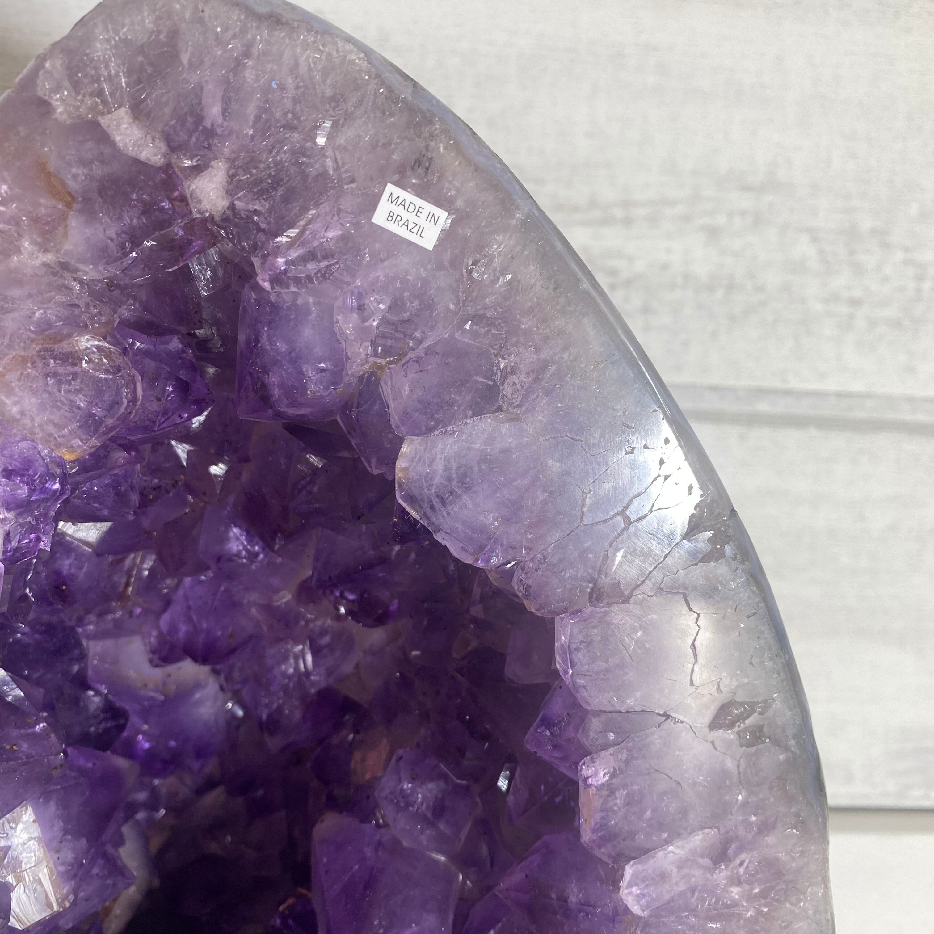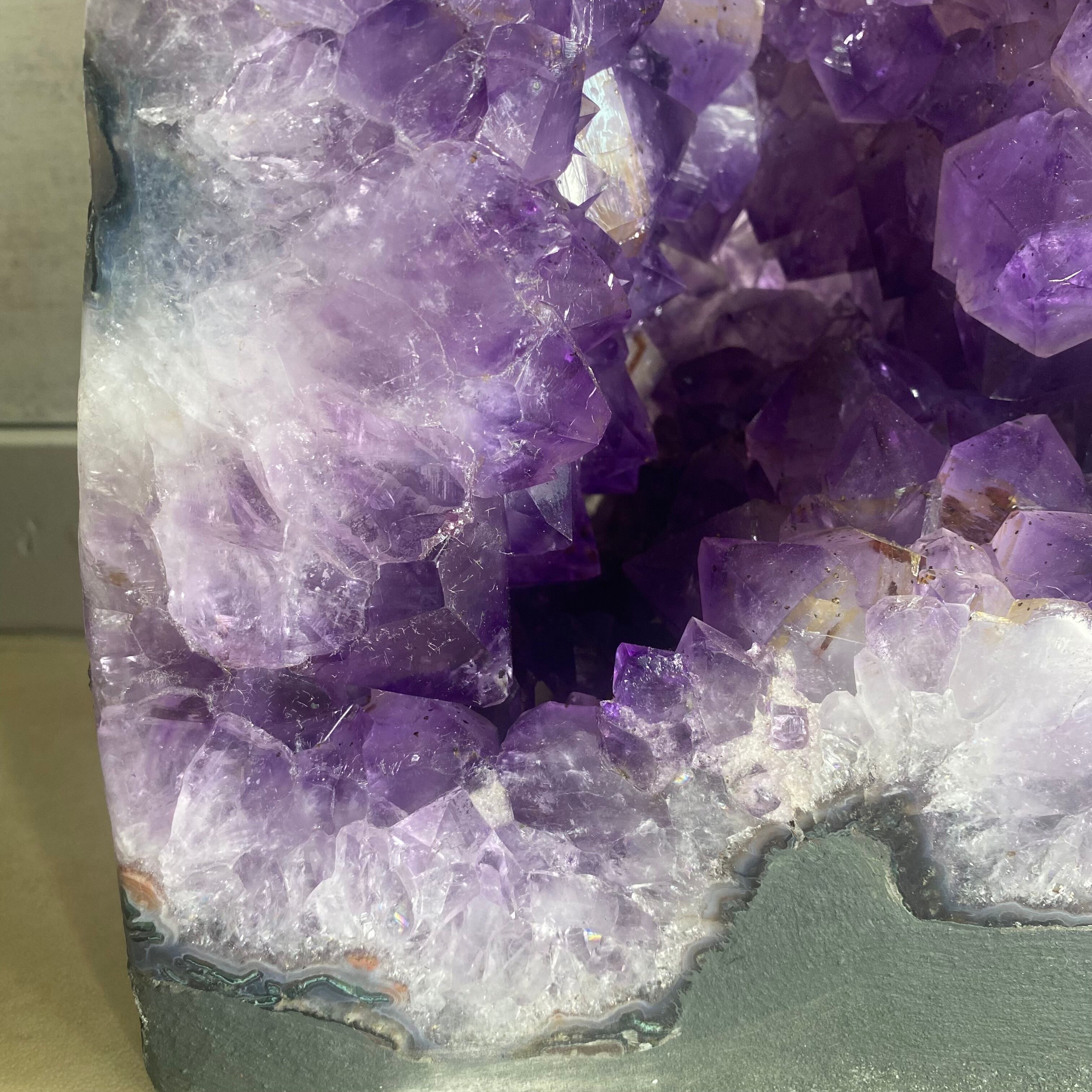 ブラジル産のアメジストは結晶が大きく、迫力と力強さを感じます。従来のアメジストドームの背面はコンクリートでカバーされていますがこちらは一味違う。。。