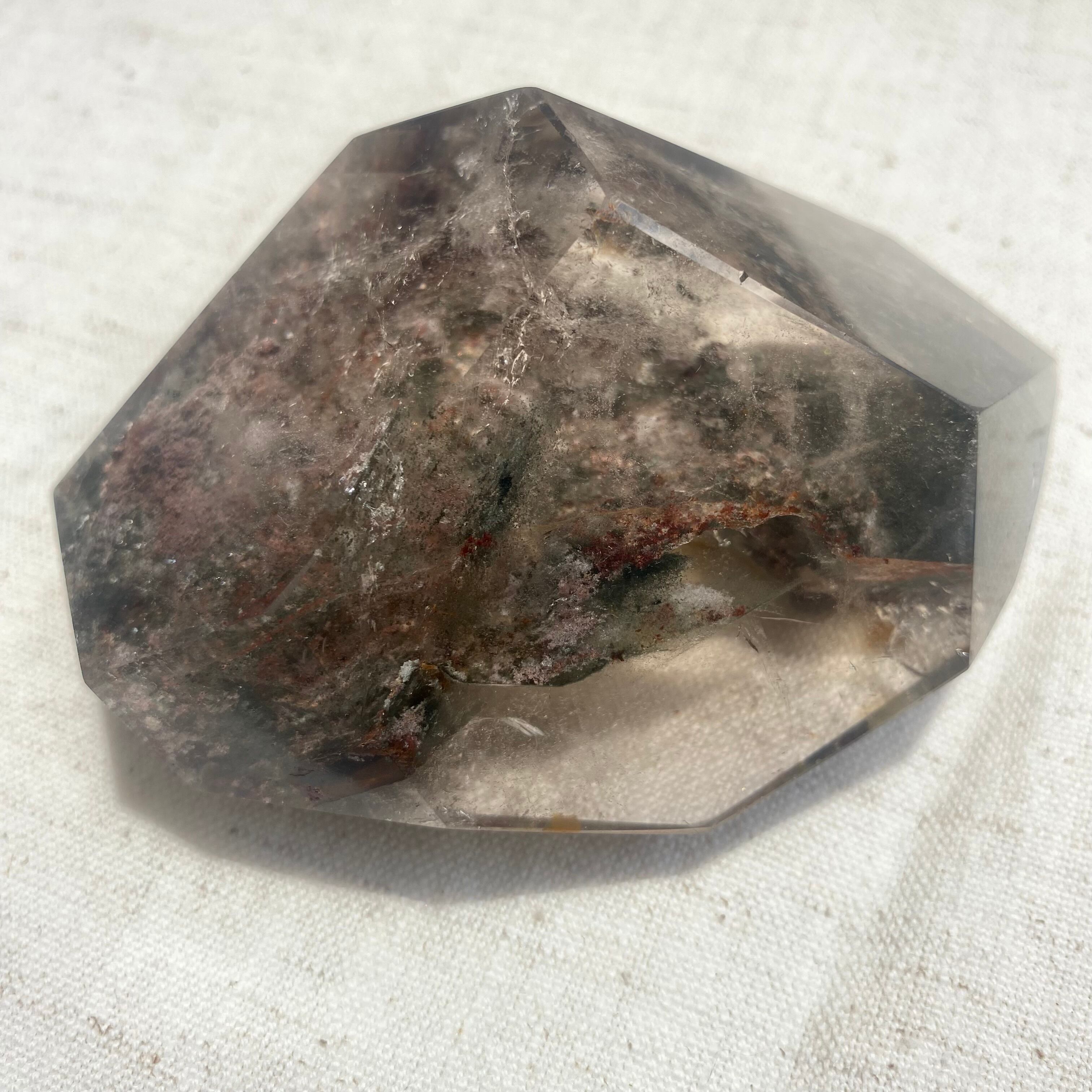 こちらの石は、水晶が成長する途中で様々な鉱物や泥岩を取り込みながら成長した水晶です。