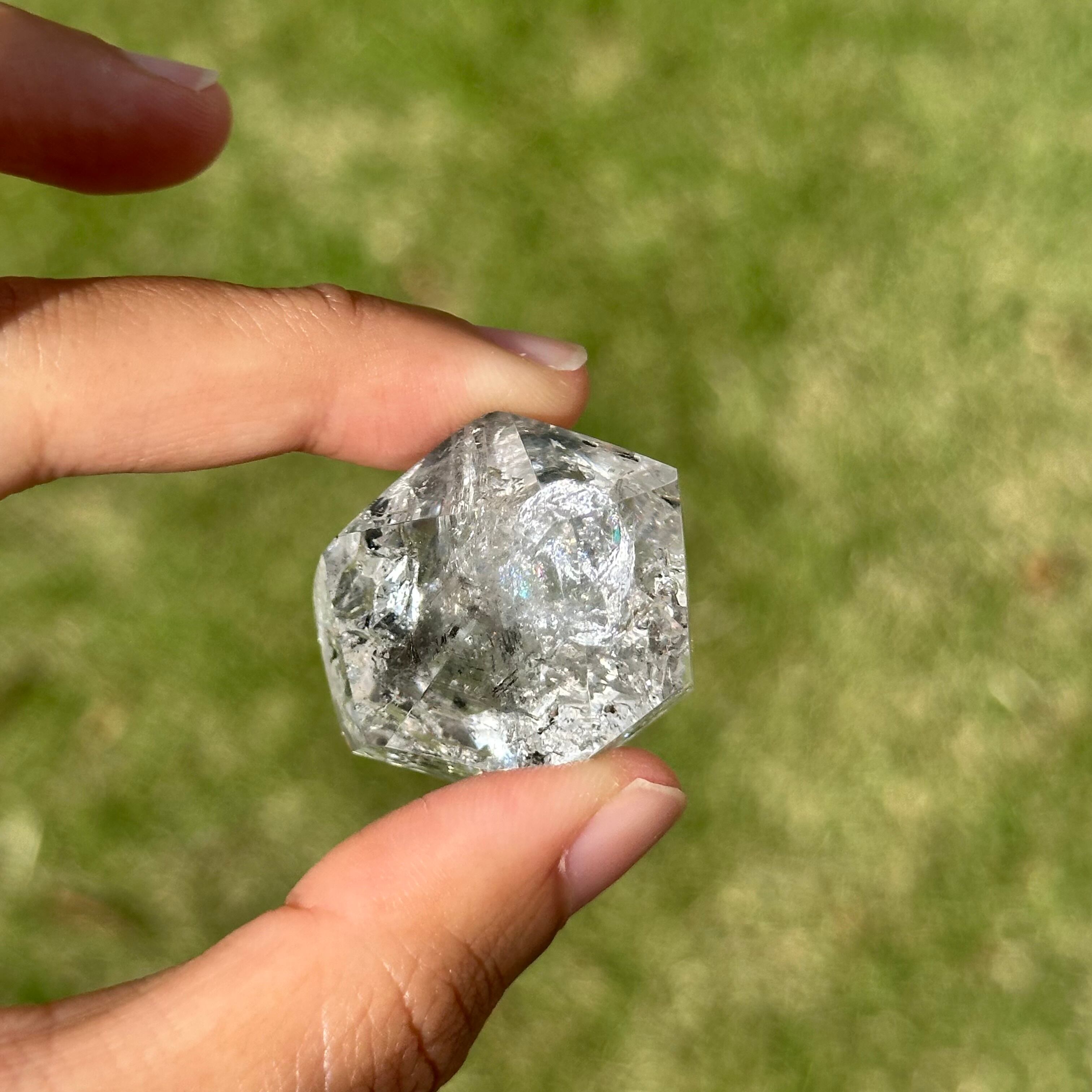 水のように美しく透き通ったものが良いと思われがちですが、内部にヒビや他の鉱物などのインクルージョン(内包物)が入っているものがあり、それが天然物の証。また、インクルージョンによって様々な種類に分類され、それぞれ違った印象を与えてくれます。