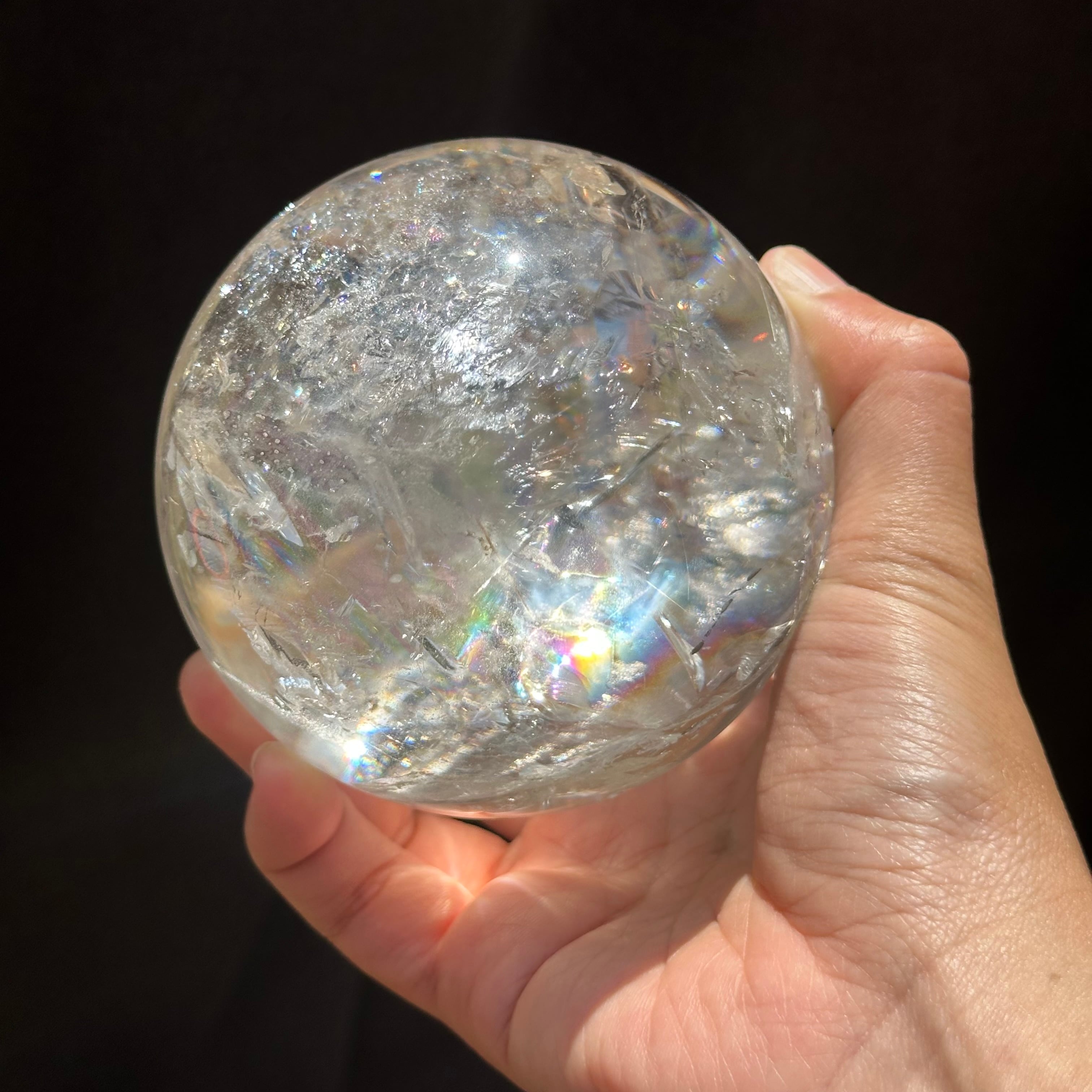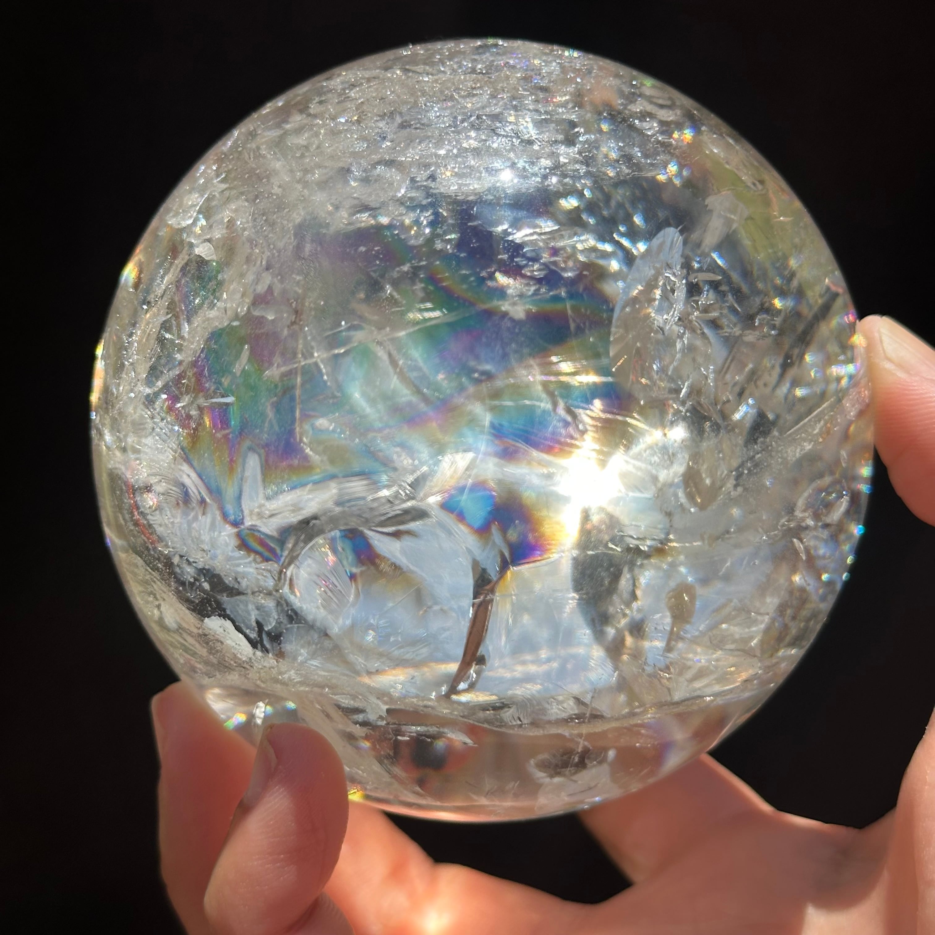 Φ9cm【水晶】 アイリス スフィア ブラジル産 スタンド付き インクルーデッド レインボー スフィア