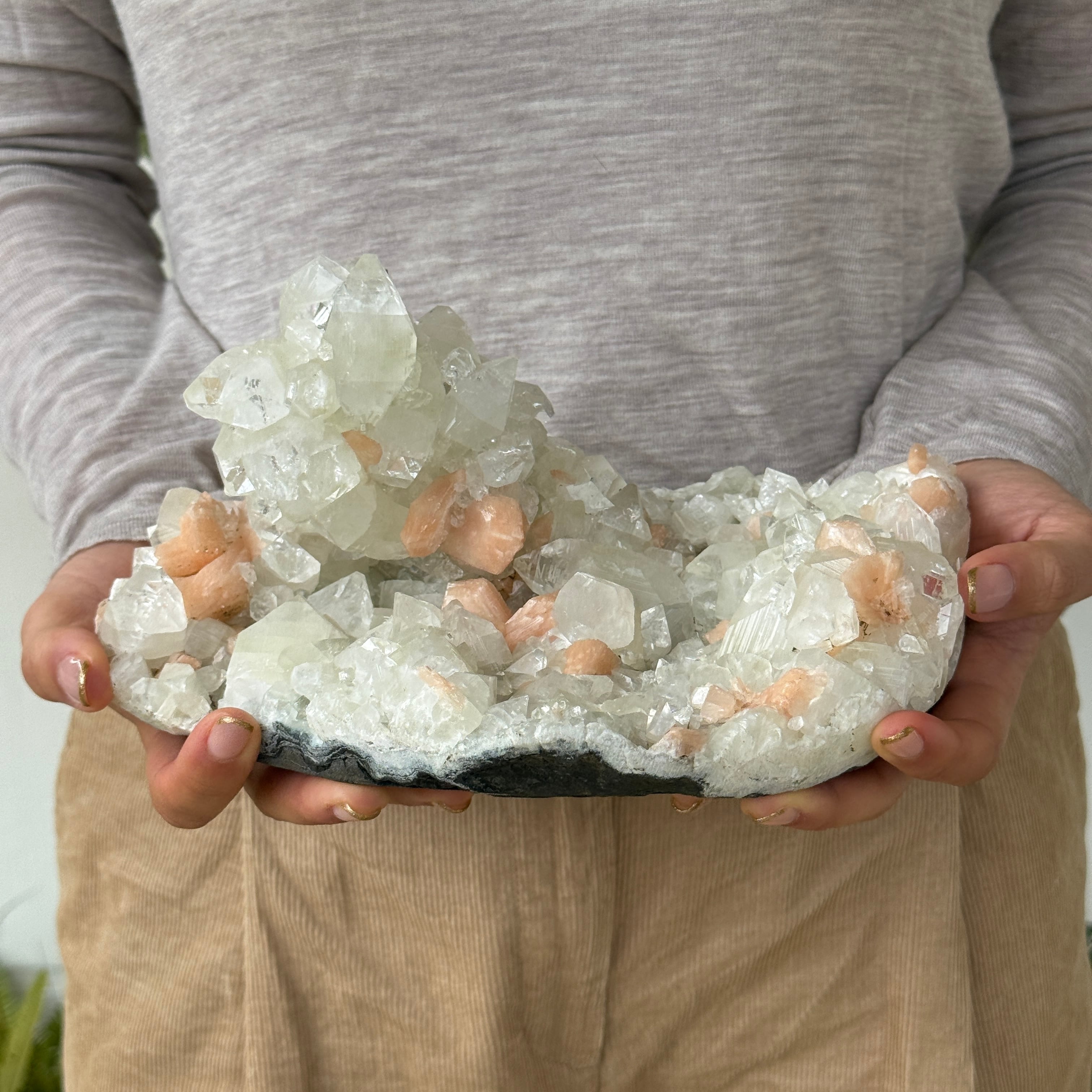 そのままディスプレイしても十分存在感があり魅力的ですが、浄化作用もございますのでブレスレットを置いて浄化したり、お気に入りのアイテムを置いたりしても素敵です。共生するピンク色はスティルバイト(束沸石)もまた、強い浄化パワーを持つとされる天然石ですので鬼に金棒、最高のお品です。